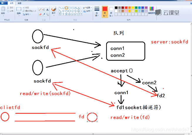 socket描述符用来与服务器建立连接,然后通过read、write函数进行数据的双向传输