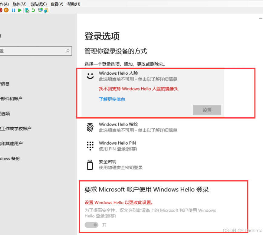 (1)切换到 ‘基本会话’ ,登陆后, 打开 设置->账户->登录选项->要求 Microsoft 账户使用Windows Hello 登录 ,默认是开启的,需要取消;