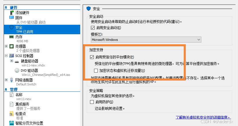 3.勾选启用受信任的平台模块,这样在安装windows11操作系统时就不会提示不符合最低系统要求了。