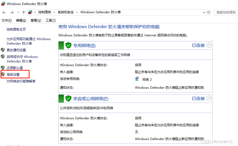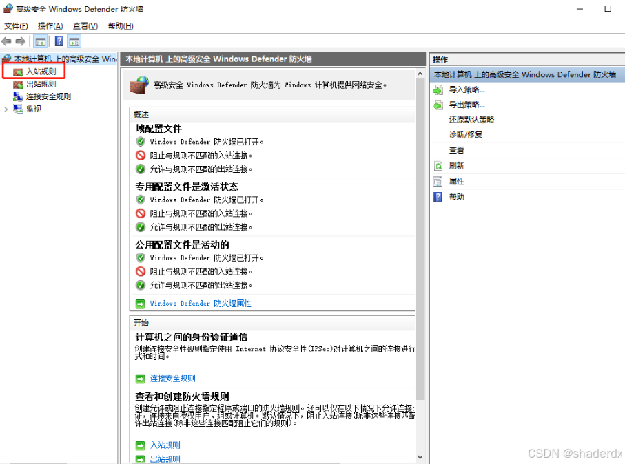 控制面板 -> 系统和安全 -> Windows防火墙 -> 高级设置 -> 入站规则