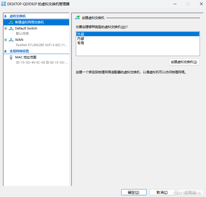 这种方式是将Hyper-V内部的虚拟网络与外部网络共享。使得内部是一个私有的网络。属于NAT的类型。