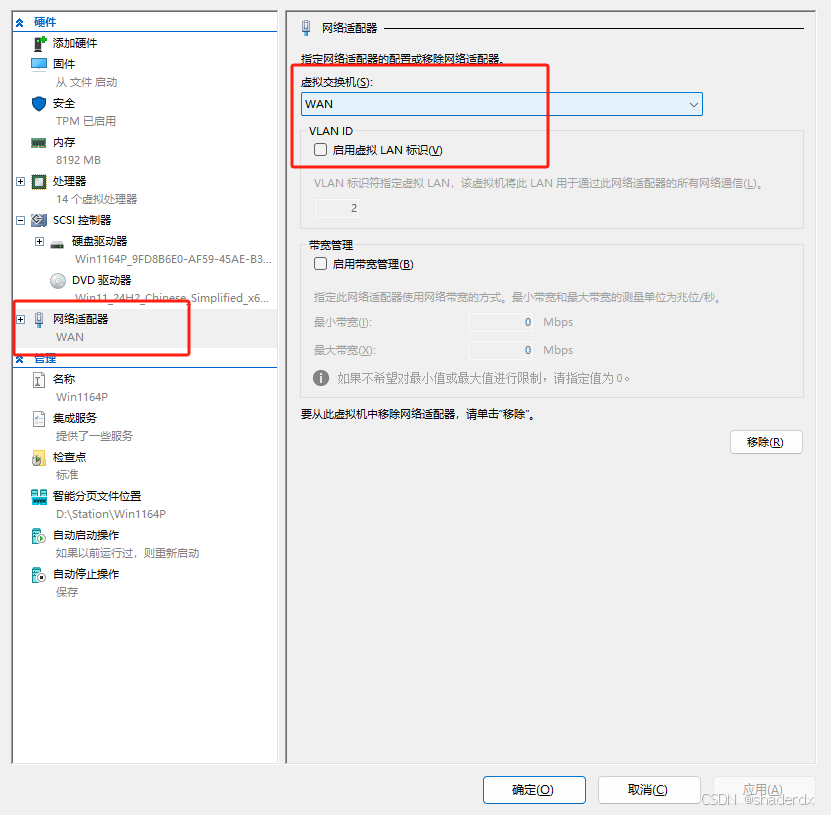 (3)然后在虚拟机设置里选择刚才新建的虚拟交换机