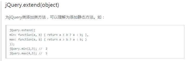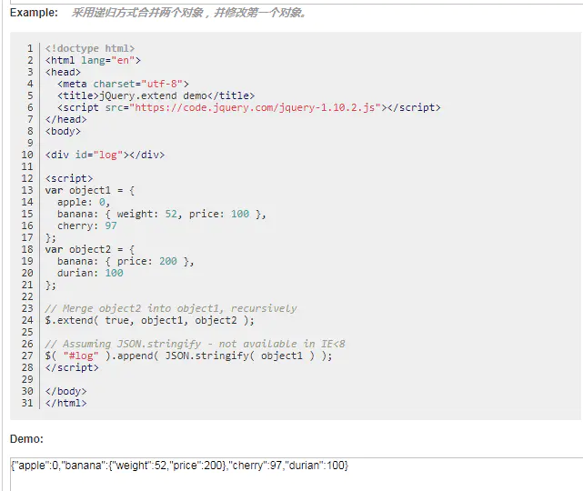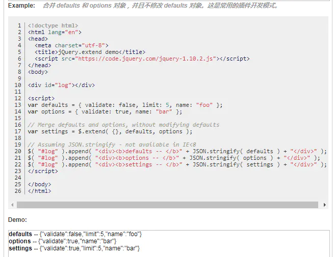 2. jquery.extend(), 将两个或更多对象的内容合并到第一个对象。