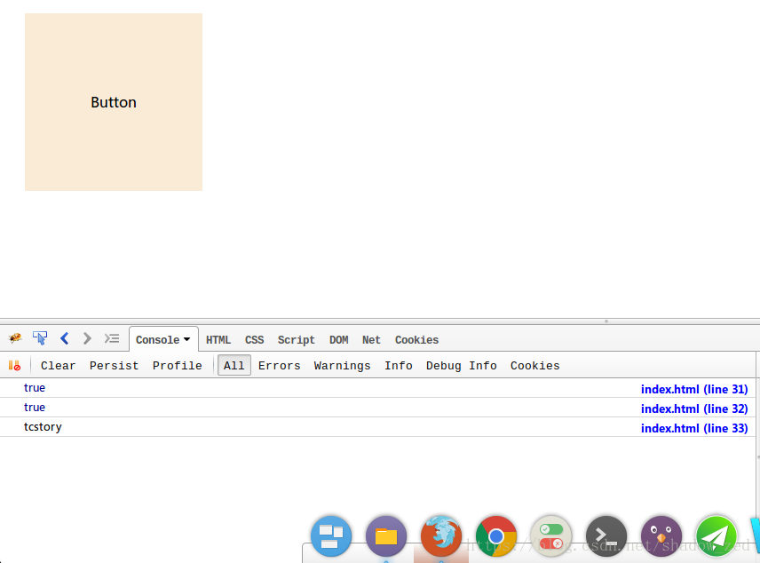 打开控制台,并且重新载入页面,你就可以看到控制台打印了字母'A'