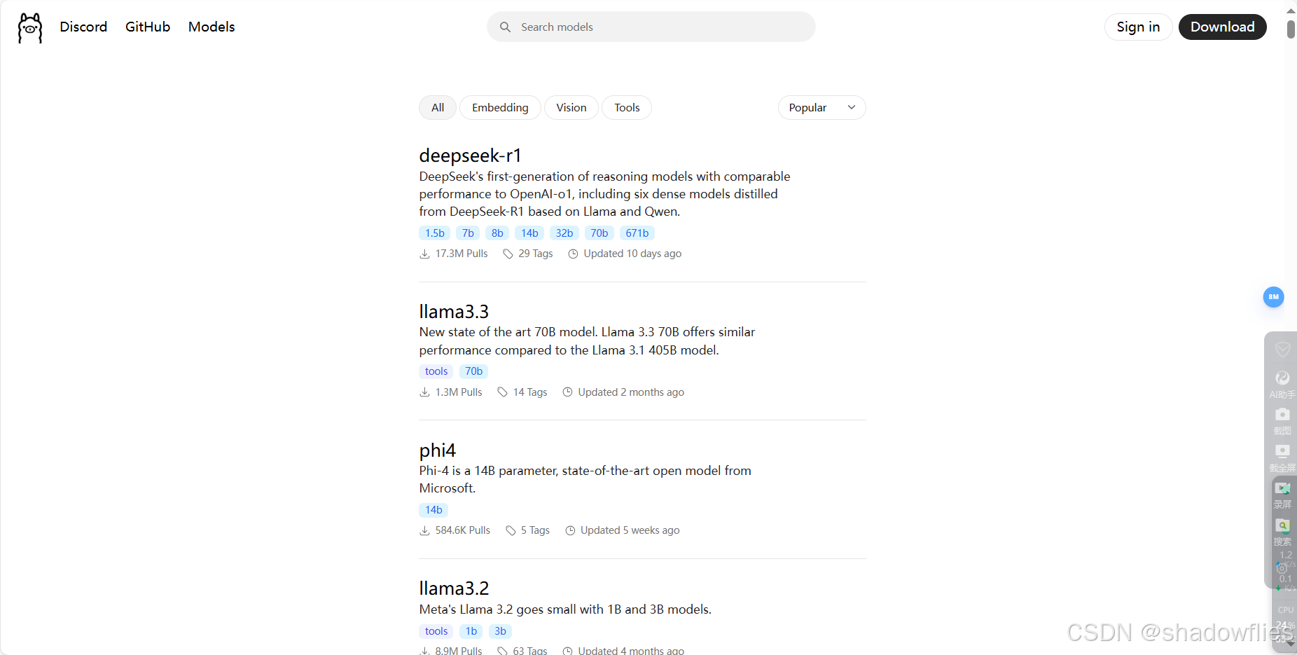 可以管理本地的大语言模型,同时提供很多开源模型下载,包括DeepSeek
