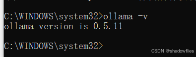 安装完后按住win + r, 然后cmd,调出命令窗口,输入ollama -v 回车
