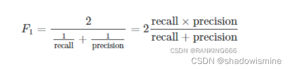 数学定义:F1-Score又称为平衡F分数(BalancedScore),它被定义为精确率和召回率的调和平均数。F-score 就是precision 和 recall的 harmonic mean。