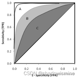 如在医学诊断中,判断有病的样本。那么尽量把有病的揪出来是主要任务,也就是指标TPR,要越高越好。而把没病的样本误诊为有病的,也就是指标FPR,要越低越好。