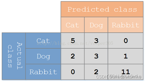 在机器学习领域,混淆矩阵又称为可能性表格或错误矩阵。它是一种特定的矩阵,用来呈现算法性能的可视化效果,通常是监督学习(非监督学习通常用匹配矩阵:matching matrix)。其每一列代表预测值,每一行代表的是实际的类别。这个名字来源于它可以非常容易的表明多个类别是否有混淆(也就是一个class被预测成另一个class)。