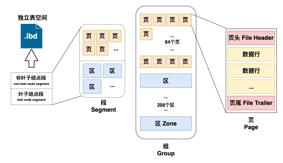 .frm文件:存储表相关的元数据,包括表结构的定义信息,每张表对应一个frm文件.ibd文件/.ibdata文件:存储数据与索引。5.7 之前所有表的数据和索引存储在共享表空间.ibdata文件,5.7版本后会为每个表生成一个独享表空间.ibd文件,具有可压缩、可传输等优势。