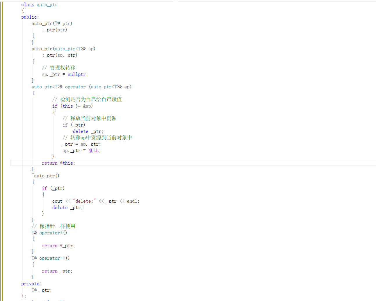 可以看一下这个设计思路,它就是把这个拷贝构造的时候,把我们的管理权交给新的指针,自己就置空,不再管理了,这个了解一下就行,基本没人用。