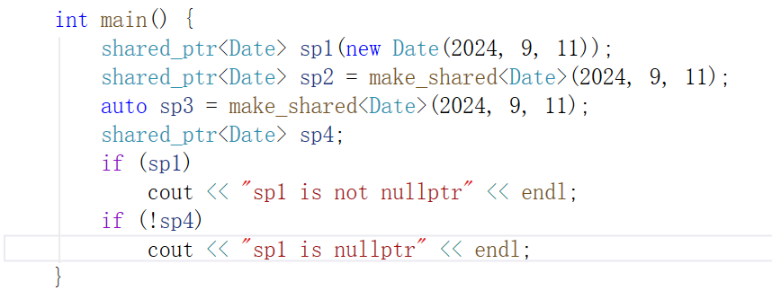 空对象没有管理资源,则返回false,否则返回true,意味着我们可以直接把智能指针对象给if判断