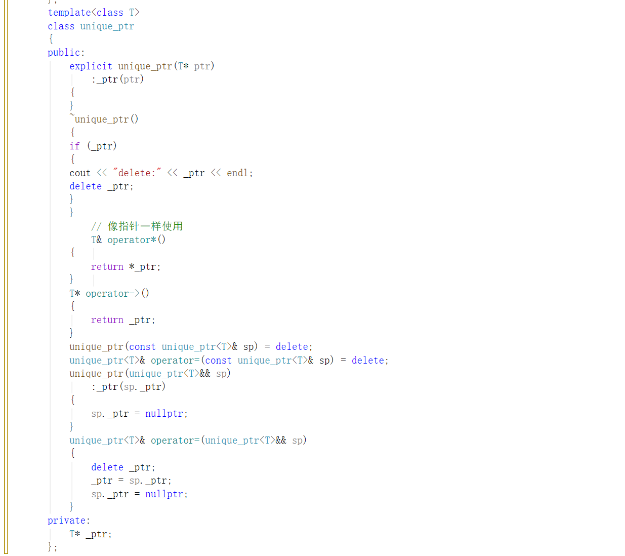 下⾯我们模拟实现了auto_ptr和unique_ptr的核⼼功能,这两个智能指针的实现⽐较简单,⼤家了