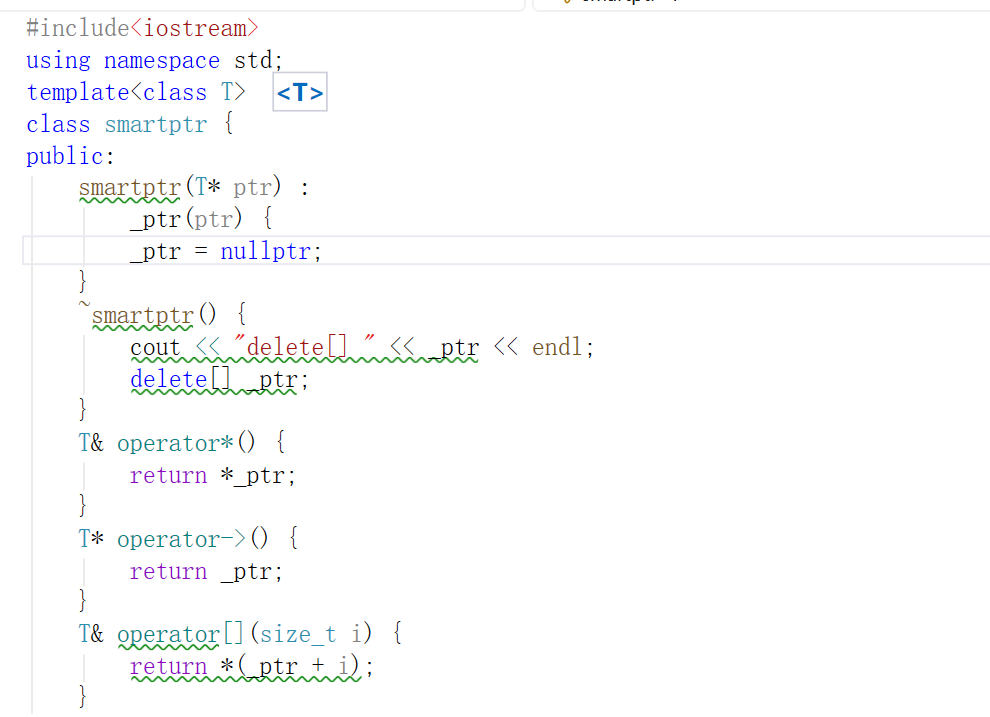 智能指针类除了满⾜RAII的设计思路,还要⽅便资源的访问,所以智能指针类还会想迭代器类⼀