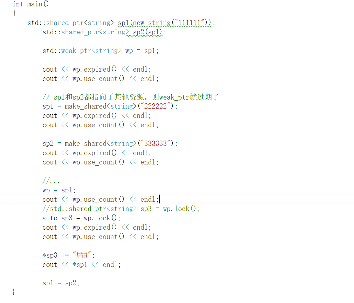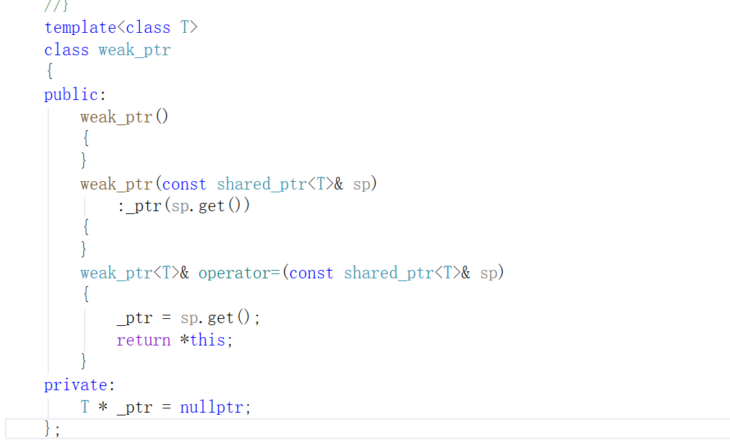 这是我们自己写的一个weak_ptr,但是库中远比这个复杂的多,我们只是帮助我们理解一下。