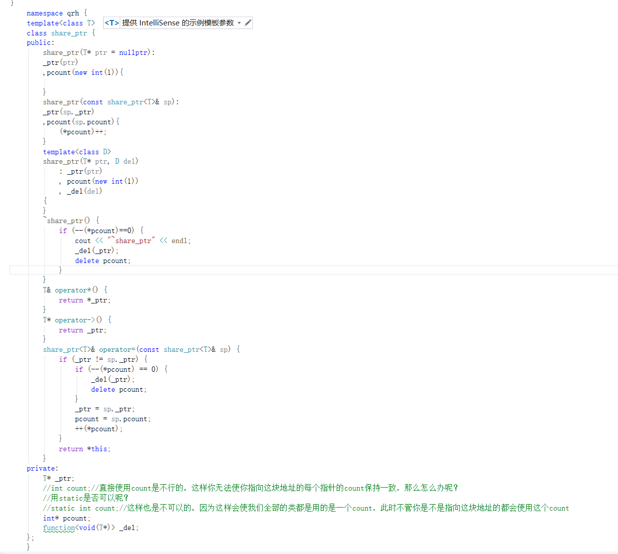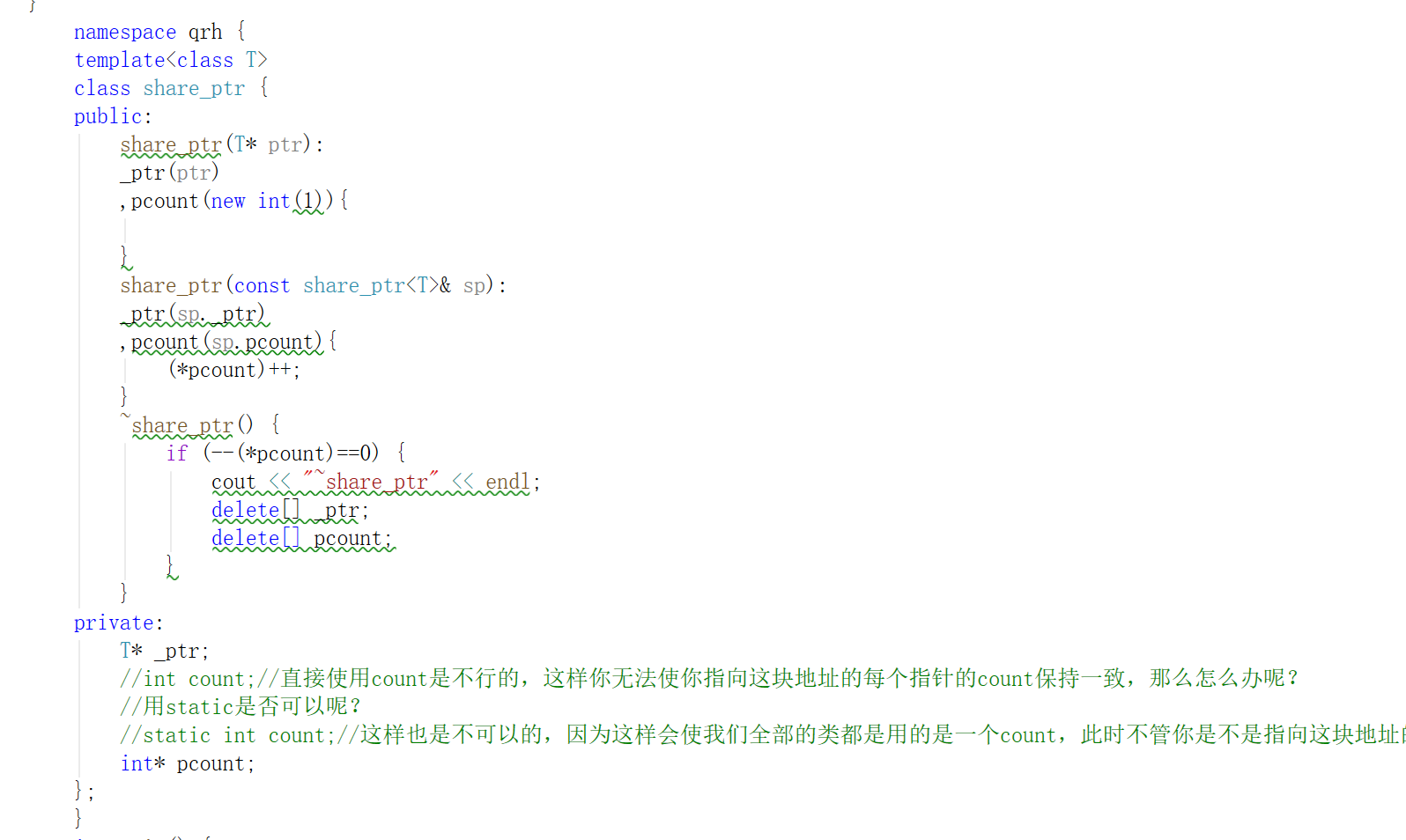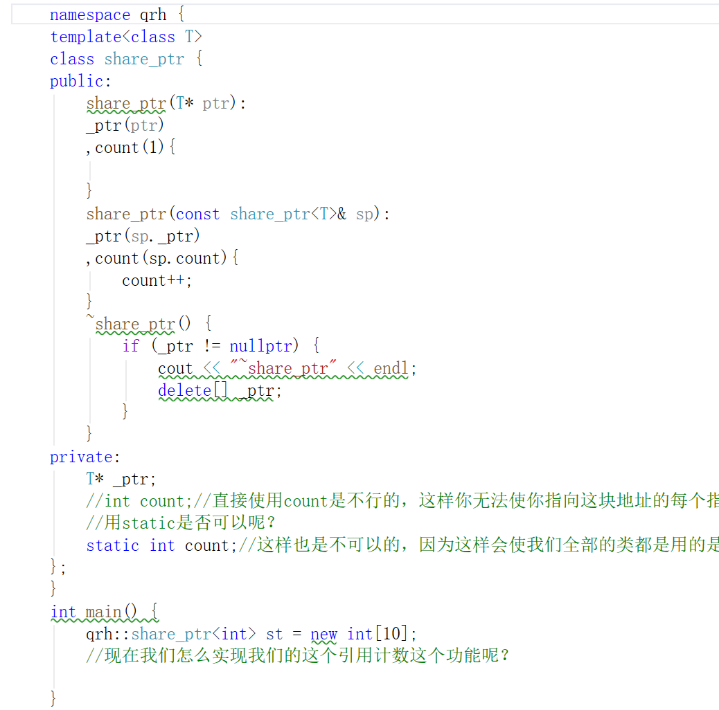 我们先让它能跑起来,其次我们就要解决引用计数这个问题了,直接使用count是不行的,这样你无法使你指向这块地址的每个指针的count保持一致,每个类都有自己的count都是不一样的,这是肯定不行的,那么怎么办呢?