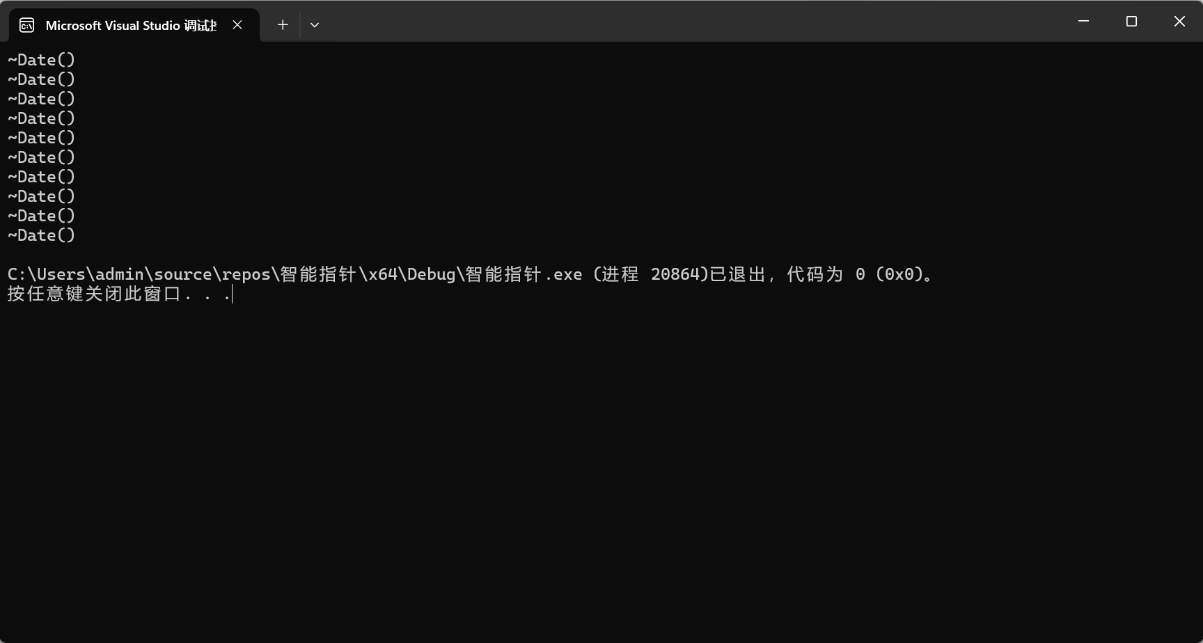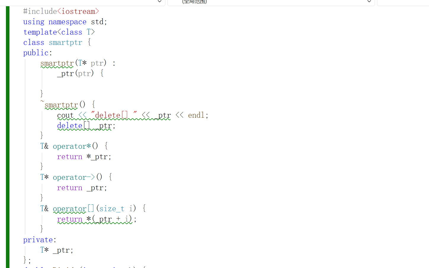 这是我们写的一个类似的模拟智能指针的场景,下面我们来看一下还是需要一个int数组,我们看看只能指针是如何做的。