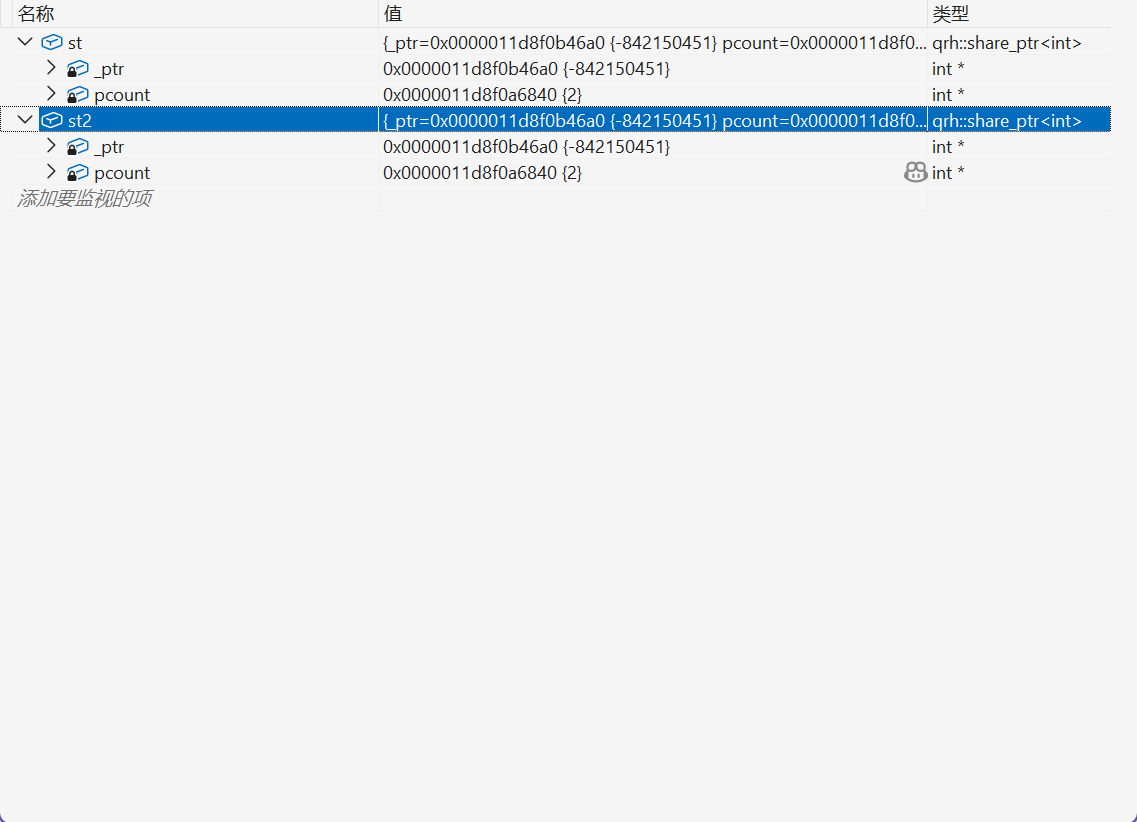 我们发现它俩的引用计数的值是一样的,此时就符合我们的预期了。