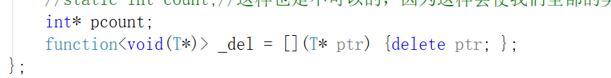 我们需要先加一个删除器的构造函数,下面又来了一个问题,我们的这个删除器应该写成什么类型呢,他可能是仿函数,lambda或者函数指针,我们应该定义成什么类型呢,这里就要用到我们之前学的包装器了。