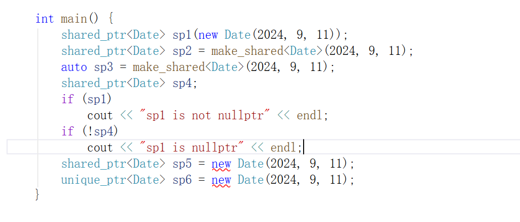 shared_ptr 和 unique_ptr 都⽀持了operator bool的类型转换,如果智能指针对象是⼀个