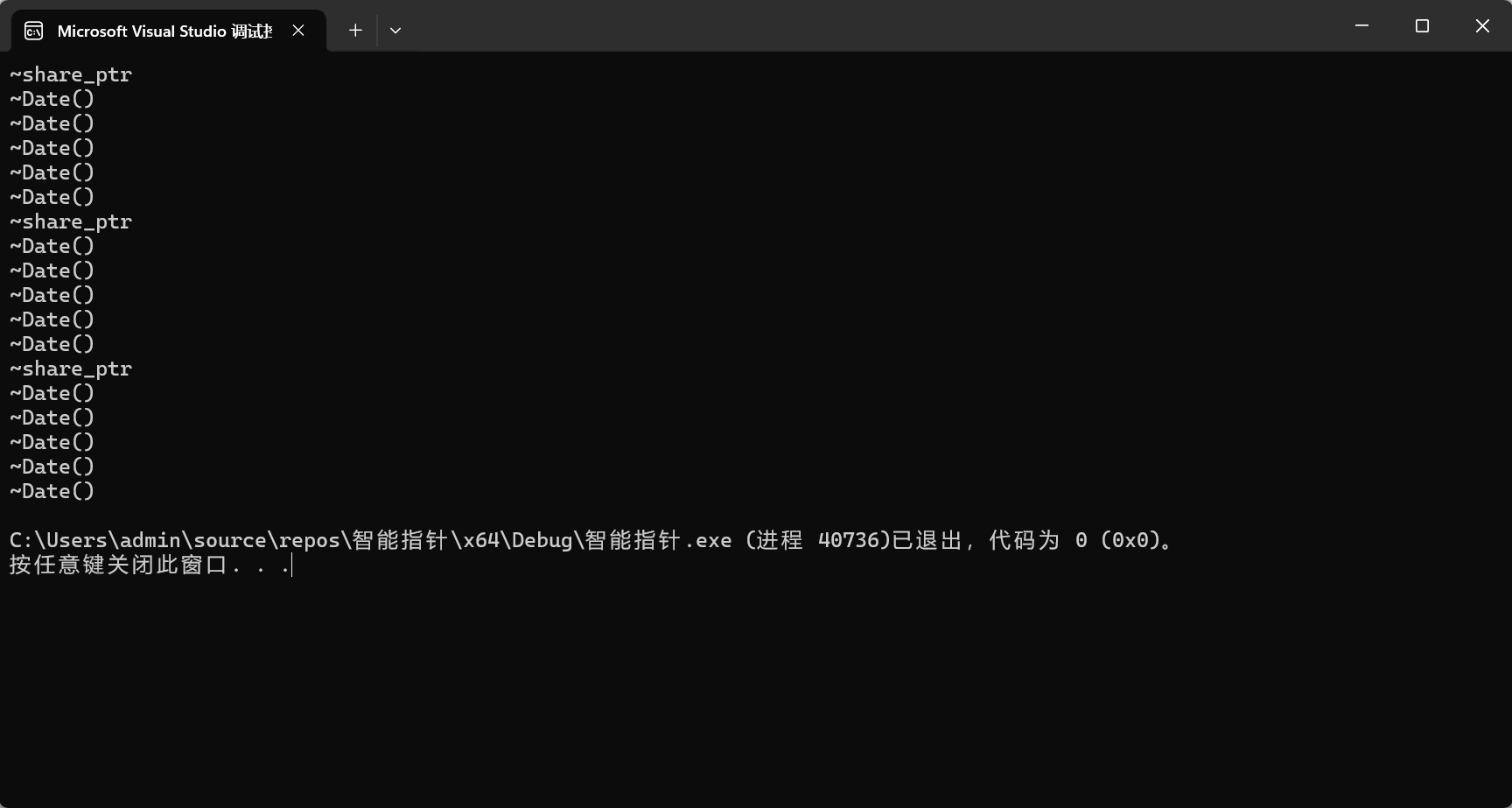 这是我们使用函数来完成的,看看区别,这里你的unique需要传一个函数指针实例化,并且还需要传入一个函数,否则你的函数指针为空又会出现问题了,相对来说还是我们的shared_ptr用着方便。