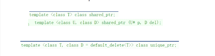 unique_ptr是在类模板参数⽀持的,shared_ptr是构造函数参数⽀持的