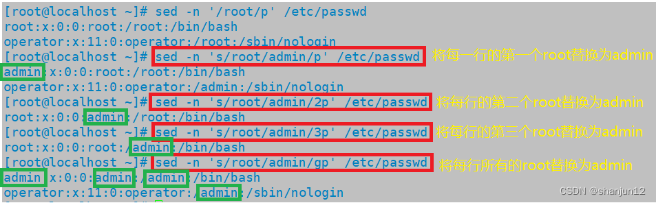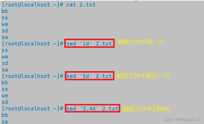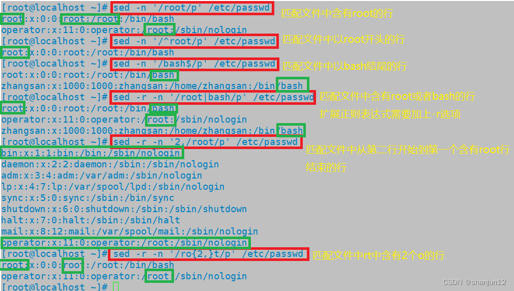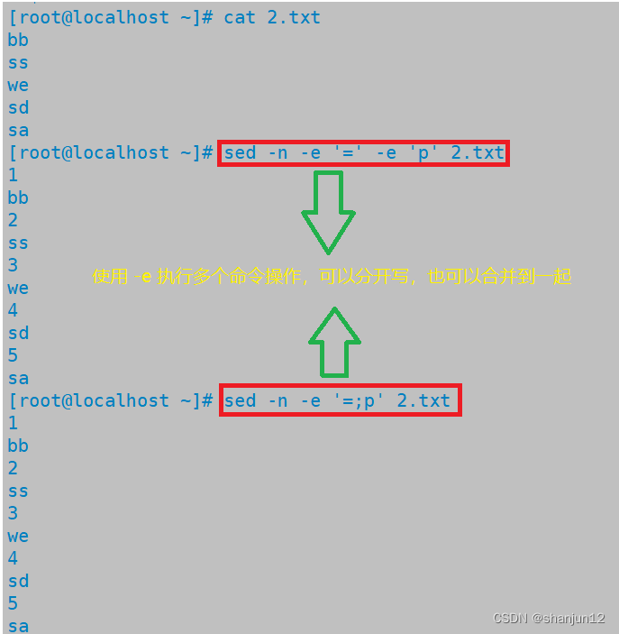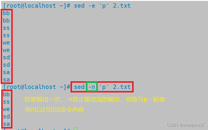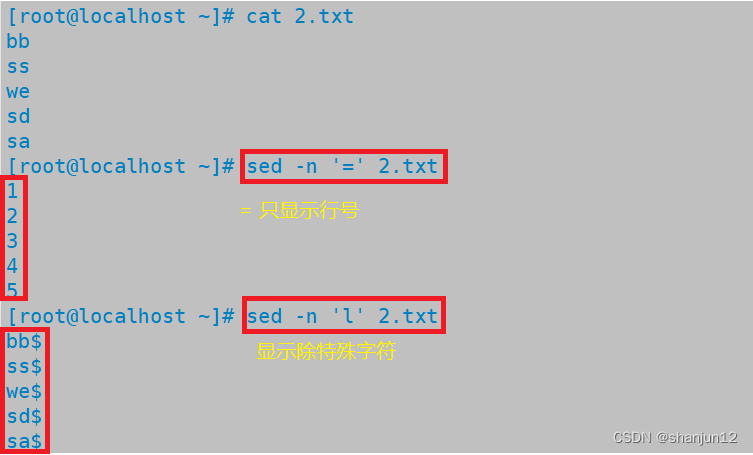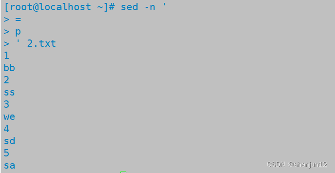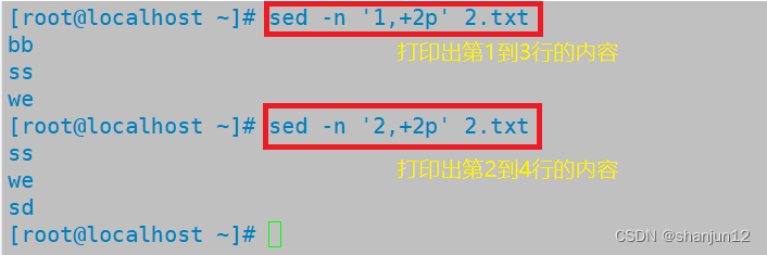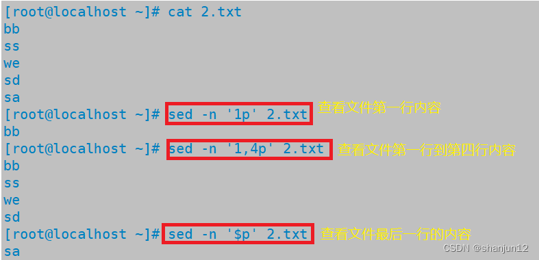 | sed -n '#,@p' | #代表行号 打印第#行到第@行内容 |