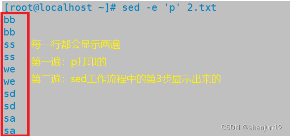 (2)执行: 默认情况下,所有的 sed 命令都在模式空间中顺序地执行,除非指定了行的地址,否则 sed 命令将会在所有的行上依次执行。