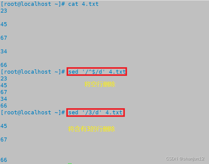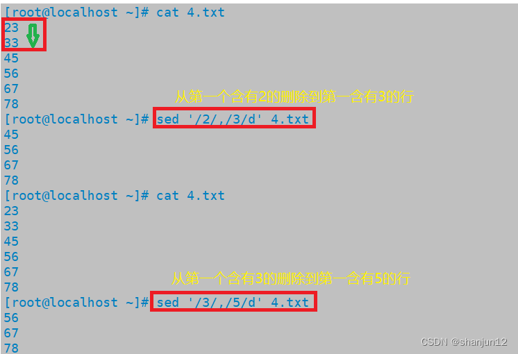 sed会读取每行的内容,从第一个位置#打开删除功能,到第二位置@删完后关闭删除功能,再继续查询与 #和@匹配的行 进行删除 一直重复此操作