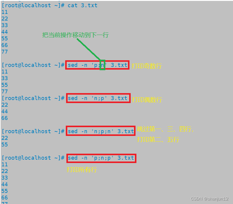 | sed -n '#p' | #代表行号 打印第#行内容 |