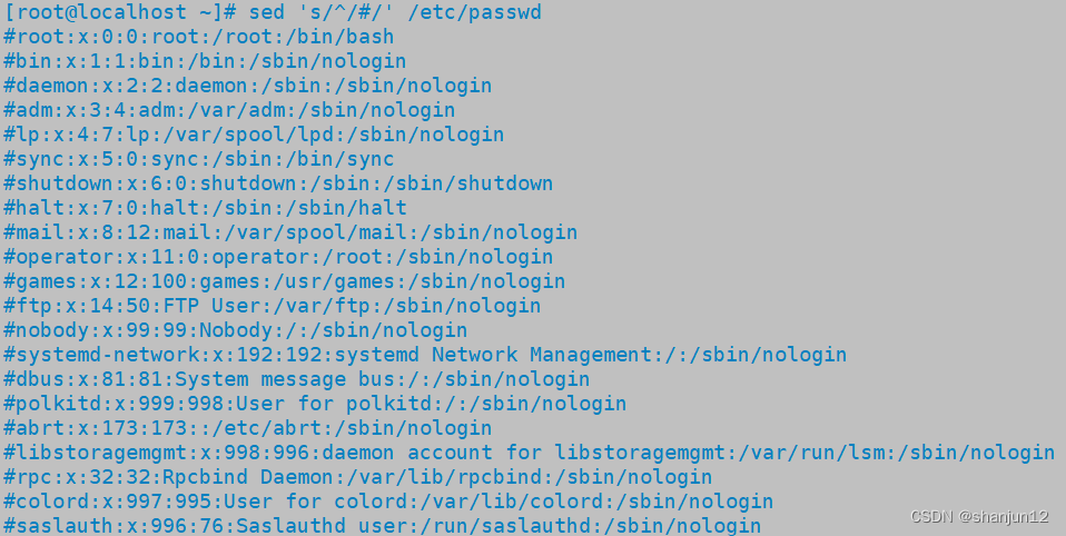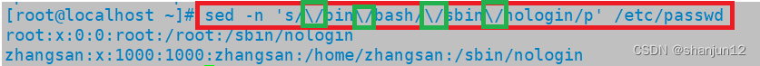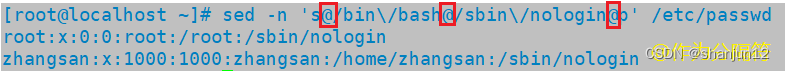 将/bin/bash 转换为 /sbin/nologin,因为替换的格式为 s/旧/新 此处的"/"为分隔符 但是/bin/bash与/sbin/nologin中的"/"为根,容易引起歧义。