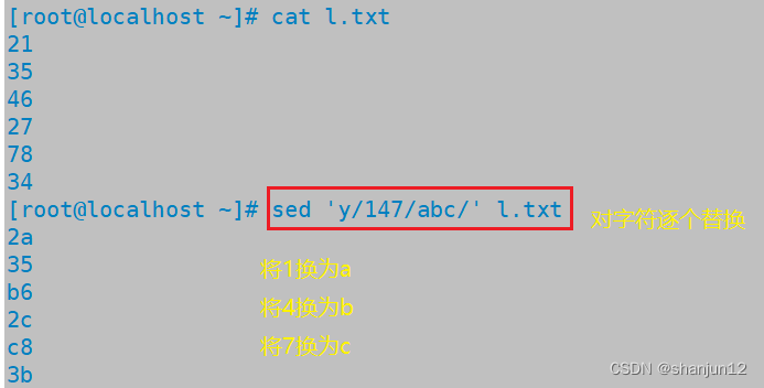 Y∶ 字符转换,转换前后的字符长度必须相同。