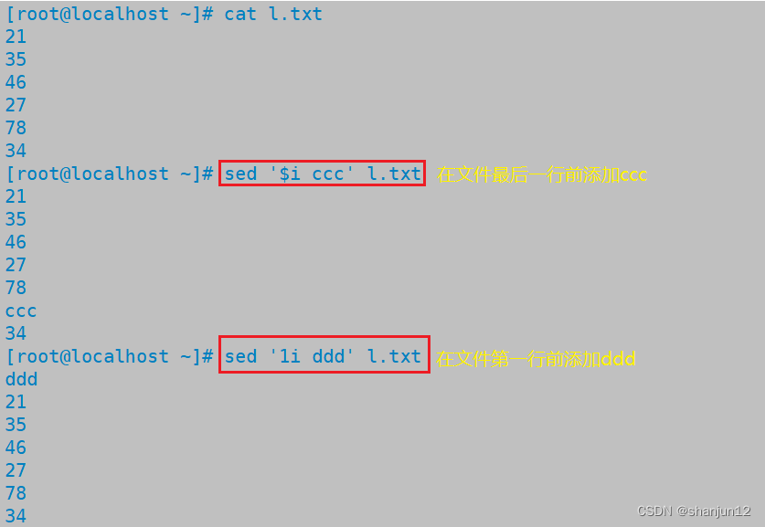 注:默认情况下所有的 sed 命令都是在模式空间内执行的,因此输入的文件并不会发生任何变化,除非是用重定向存储输出。