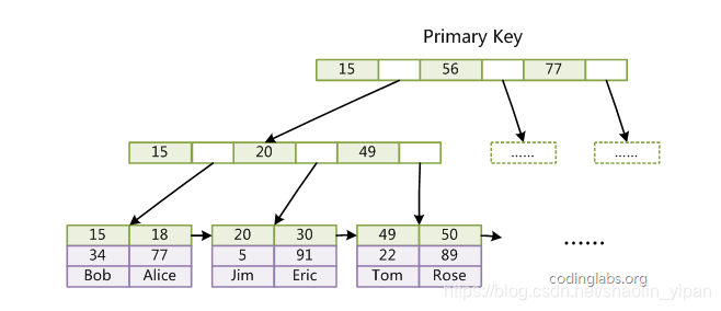 4).所有的叶子结点都位于同一层,所有的数据都存储在叶子节点。