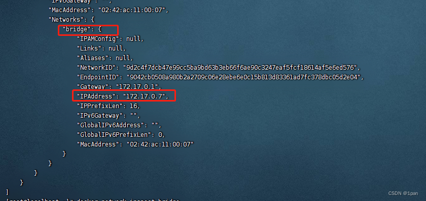 5、再次执行 docker inspect xxl-job-admin检查配置信息,容器ip已修改跟manager一个网段。