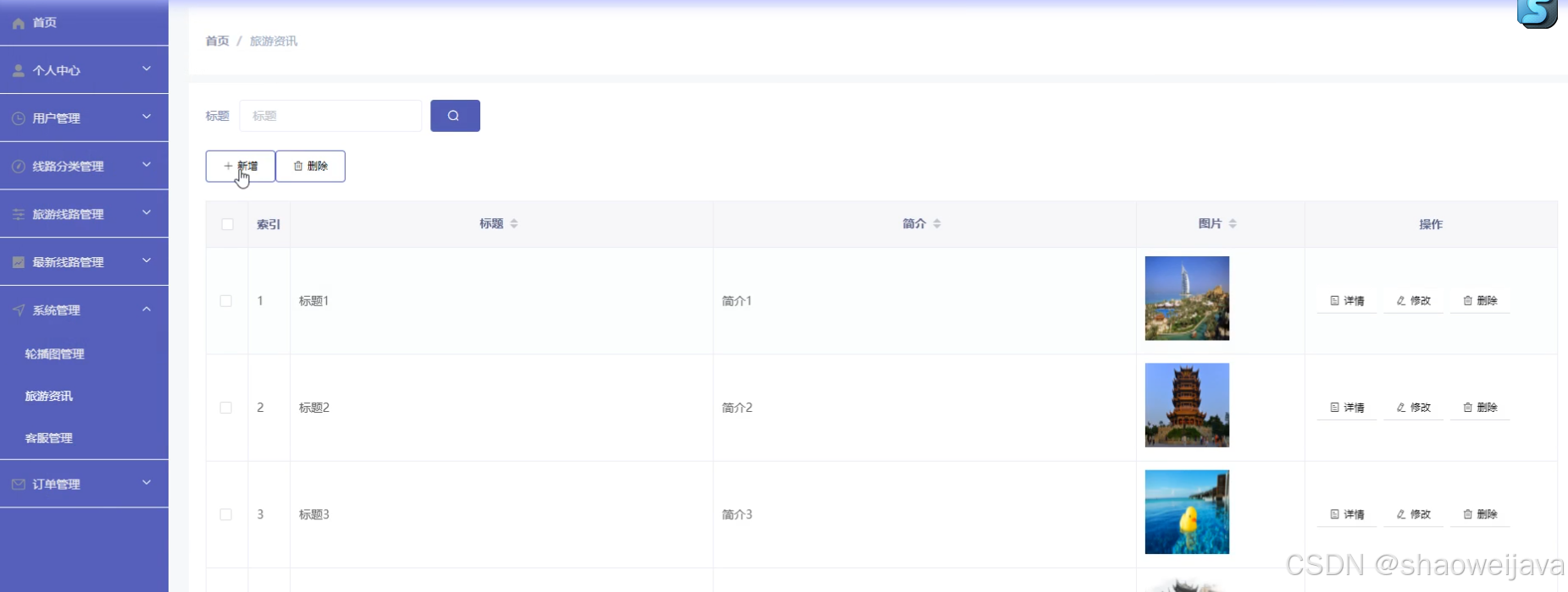 467基于SpringBoot的旅游网站,系统包含两种角色:用户、管理员,系统分为前台和后台两大模块,主要功能如下: