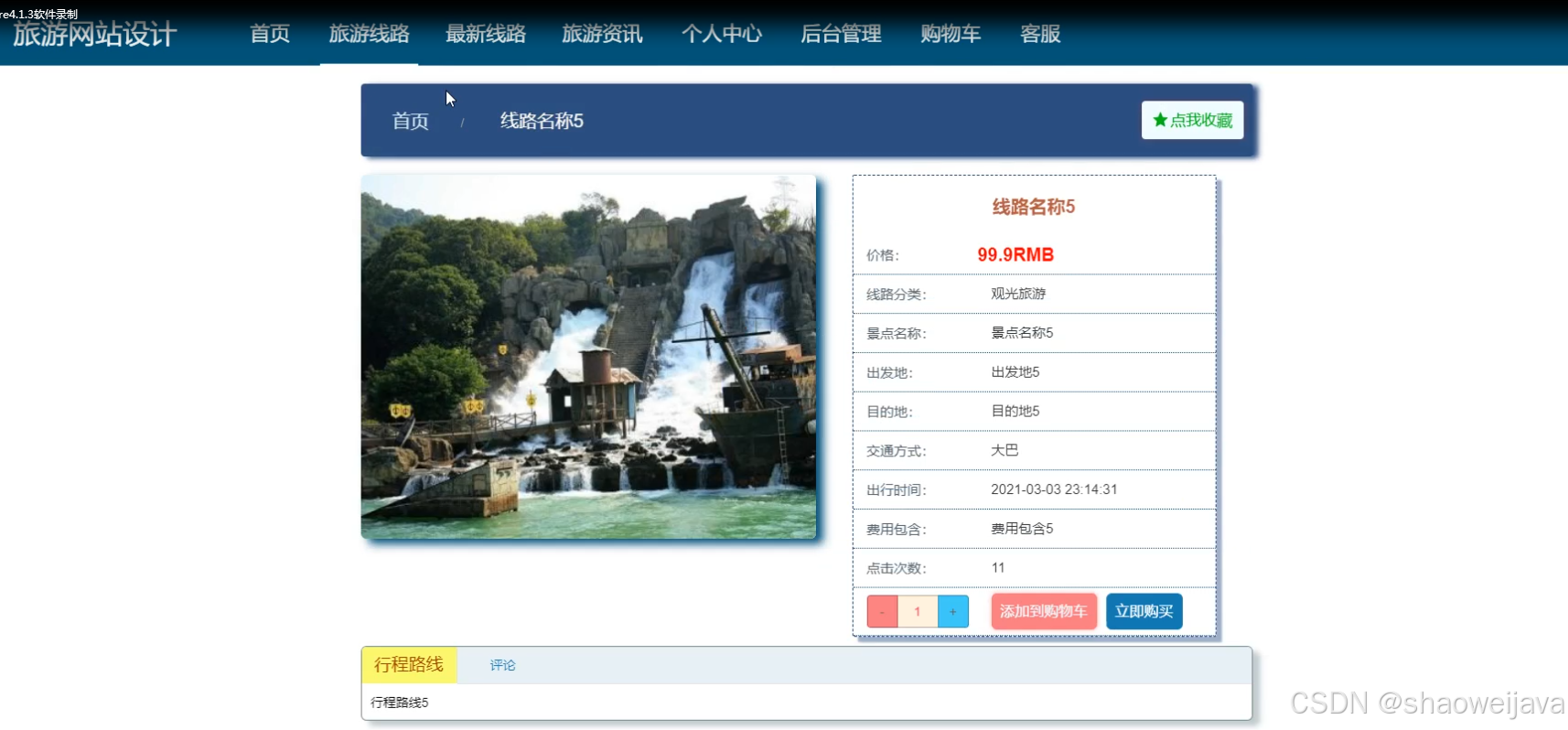 - 用户可查看商品详情,并进行收藏、加入购物车和购买操作。