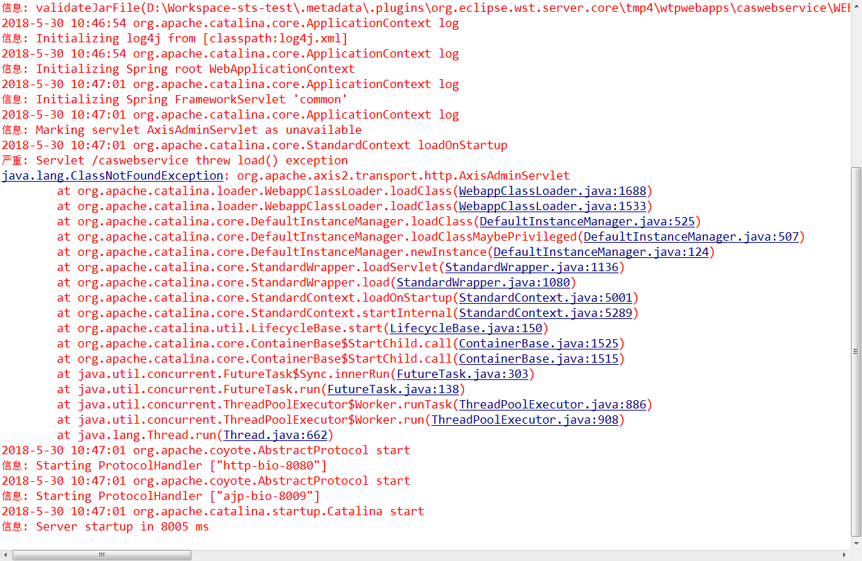 如图所示:遇到启动服务AxisAdminServlet类无法找到的问题,如果排查过这个类已经存在但是依然存在启动错误