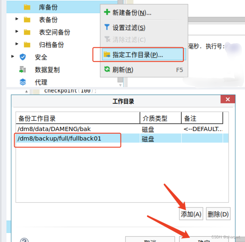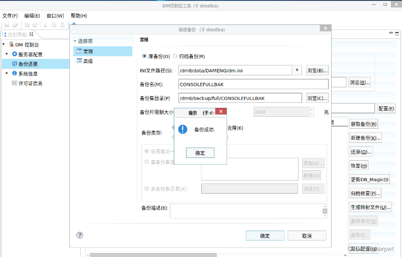 12、备份命令示例,使用/dm8/tool下的./manager图形化界面操作。只有上面提到的冷备和恢复需要使用./console