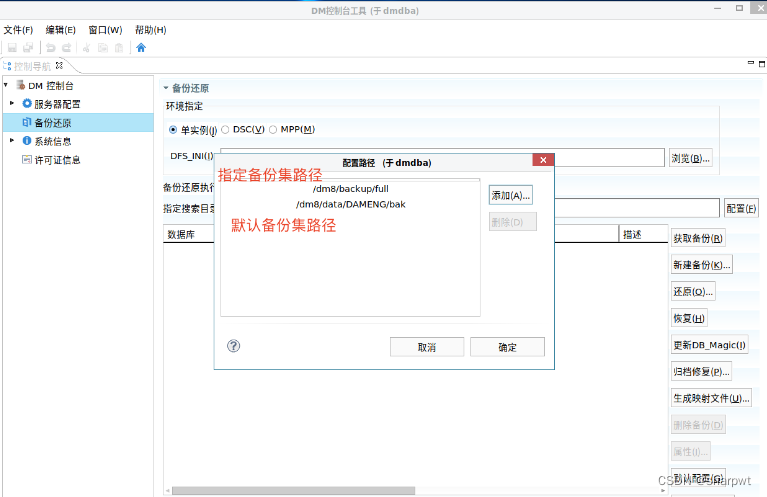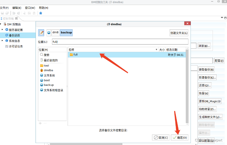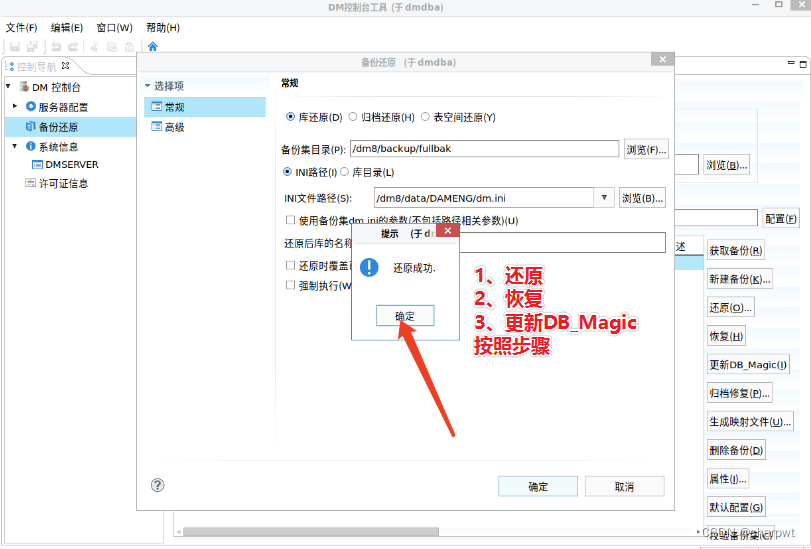 11.备份与还原:./dmservice.sh 必须是 root 打开,否则会造成无权限错误)