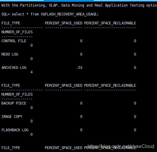 select * from V$FLASH_RECOVERY_AREA_USAGE;
