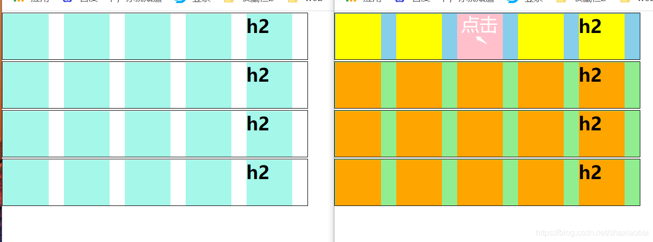 点击一个元素,使它自己变粉色,兄弟变黄色,其父级变蓝色,父级的兄弟变色,父级的兄弟的自己变橘色