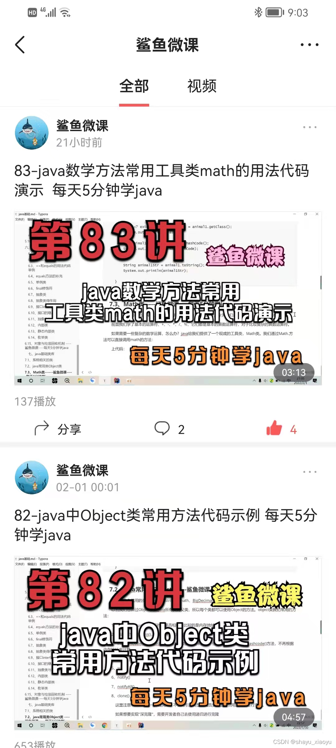--今日头条或抖音账号:鲨鱼微课,每天分享java课程,从初级到高级,感兴趣的小伙伴可以关注一下---