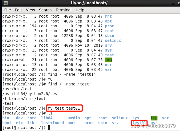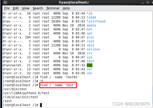 示例:查找/root下的与test相关的目录(文件) find / -name ‘test*