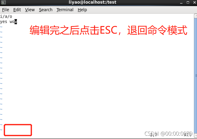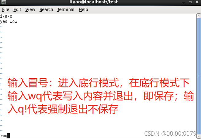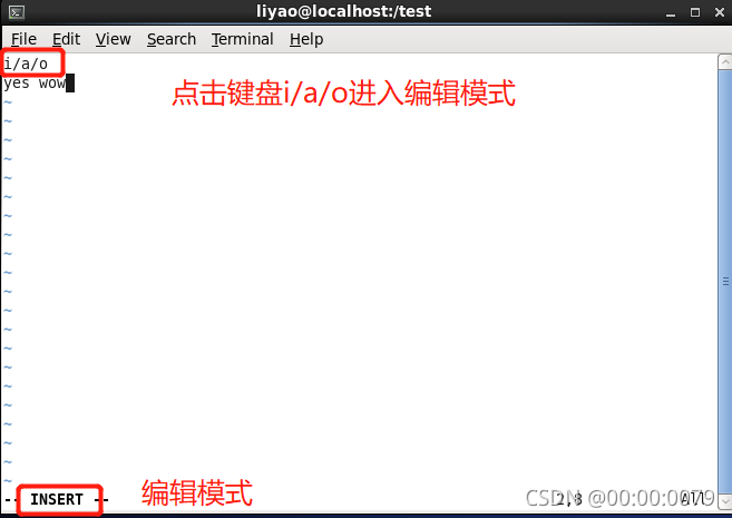示例:编辑/test下的aaa.txt文件,使用vim aaa.txt