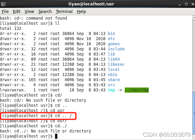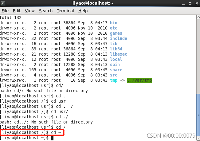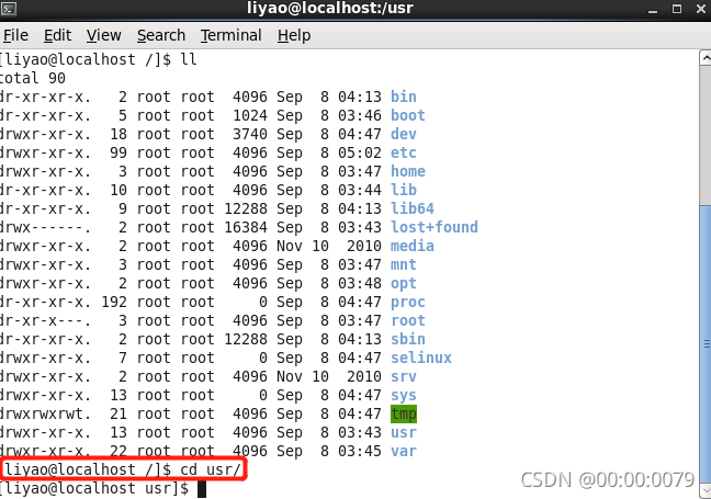 示例:在根目录 / 下使用ls,可以看到该目录下的所有的目录和文件