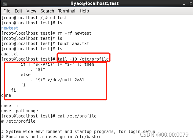 示例:使用tail -10 查看/etc/profile文件的后10行,Ctrl+C结束
