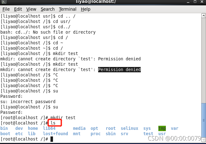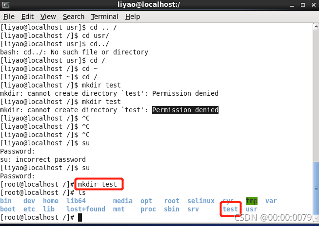 示例:在根目录 / 下 mkdir test,就会在根目录 / 下产生一个test问目录