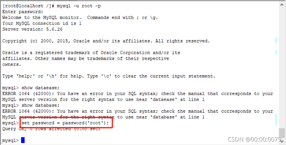 set password = password('root');