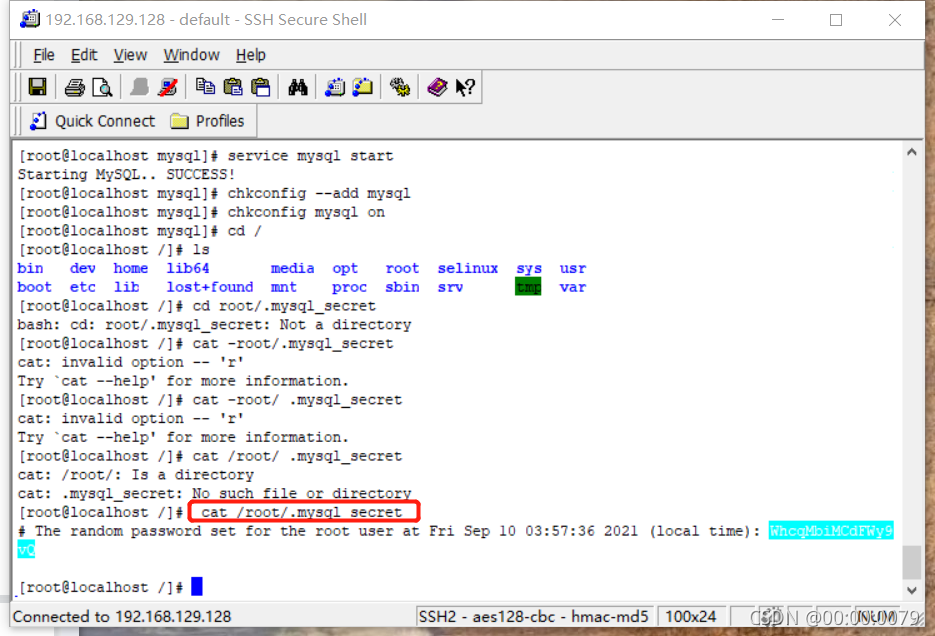 mysql安装好后会生成一个临时随机密码,存储位置在/root/.mysql_secret